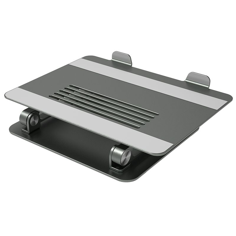 Stojak jest wykonany z anodowanego aluminium. To sprawia, że jest bardzo lekki oraz niezwykle wytrzymały. Posiada on silikonowe podkładki, które zapobiegają ślizganiu się stojaka po blacie.