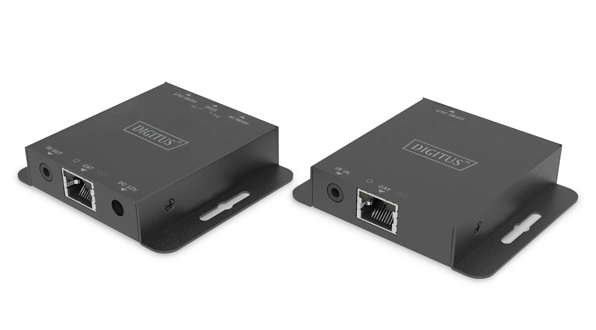 Informacje dodatkowe: Zzasięg sygnału audio-wideo HDMI na odległość do 70m Obsługa rozdzielczości do maks. 4K/30Hz, 4:4:4 Obsługa kabli sieciowych CAT 6, CAT 6A, CAT 7, CAT 8 PoC (Power over Cable) – tylko nadajnik wymaga zewnętrznego zasilacza Loop-Out/wyjście HDMI – podłączenie lokalnego monitora do urzą. źró HDMI 1.4, HDCP 1.4, Transmisja sygnału podczerwieni (dwukierunkowa) Złącza modułu nadajnika: 1 x wejście HDMI (4K/30Hz) – do podłączenia źródła sygnału 1 x Loop-Out/wyjście HDMI – złącze do lokalnego monitora 1 x wyjście RJ45 – złącze na kabel CAT do transmisji 1 x wyjście na podczerwień – podłączenie przekaźnika na podczerwień 1 x wejście na zasilacz (DC 12 V / 1 A) – podłączenie zewnęt. zasilac 1 x przełącznik EDID Złącza modułu odbiornika: 1 x wyjście HDMI (4K/30Hz) – podłączenie urządzenia wyjściowego 1 x wejście RJ45 – podłączenie kabla CAT do transmisji 1 x wejście na sygnał podczerwieni Nadaje się do montażu ściennego Ochrona przed przepięciami (ESD) Zużycie prądu: Moduł nadajnika: 1,86W, moduł odbiornika: ok. 0,87W Obudowa: z metalu, waga 130g Wymiary (1 moduł): dł. 7,9cm x szer. 6,9cm x wys. 1,65cm