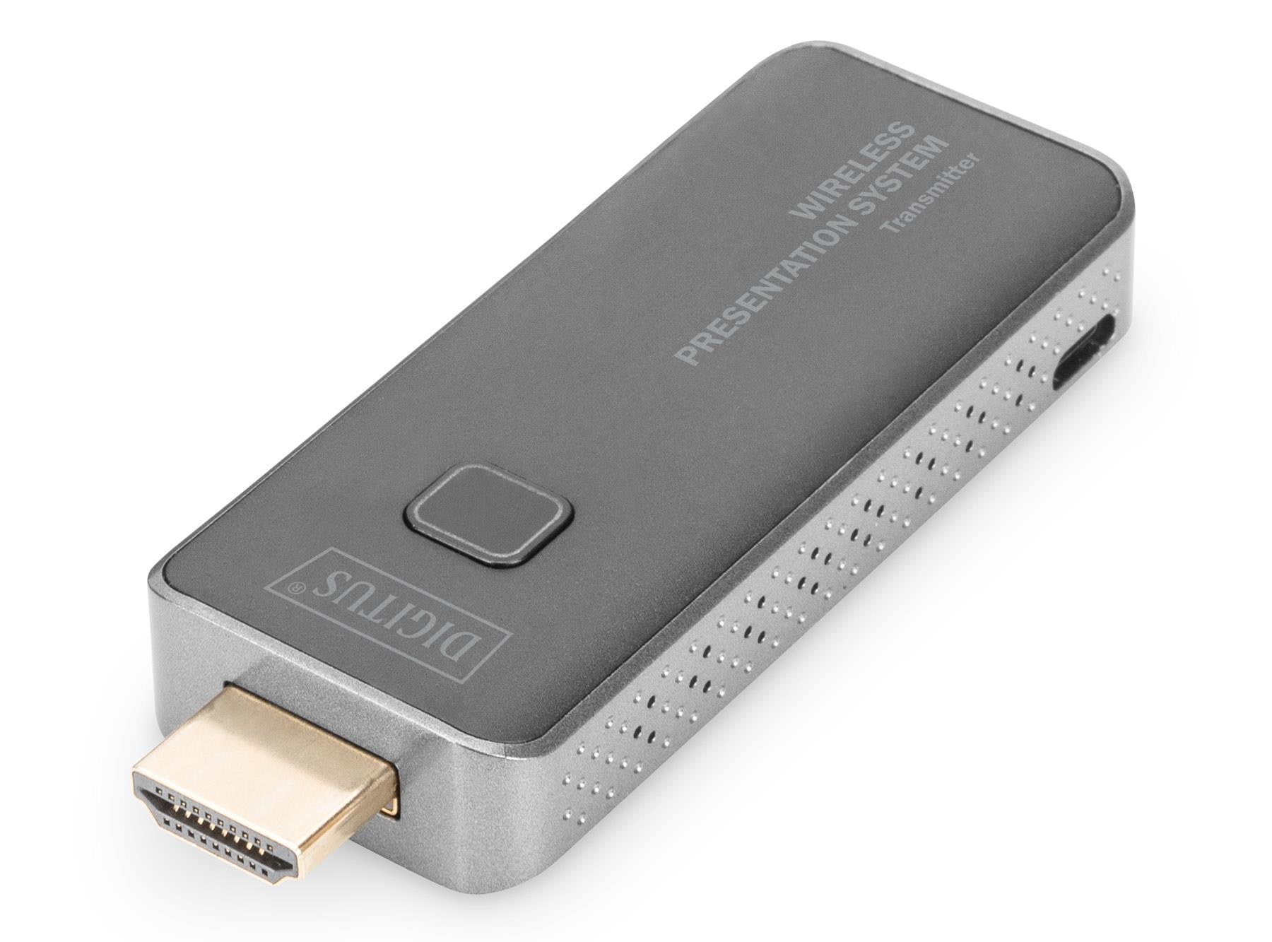 Informacje dodatkowe: Dodatkowa jednostka przekaźnikowa do Wireless Presentation System(DS-55319 Bezprzewodowa transmisja sygnału HDMI na odległość do 50m Obsługa rozdzielczości do 1920x1080p Kanał transmisji sygnału: IEEE 802.11ac, 5 GHz, 2T2R Wersja HDMI: 1.4, Wersja HDCP: 1.3 Szyfrowanie AES 128 bitów Protokół uwierzytelniania: WPA2 (WPAS-PSK / WPA2-Enterprise) Obsługa Windows, macOS Liczba złączy na jednostkę: 1 x wtyk HDMI, 1 x gniazdo micro USB Zasilanie: Gniazdo HDMI (wymagane jest 0,5A) lub Micro-USB (DC 5V/0,5A) Przycisk do nawiązania połączenia z kontrolką LED statusu Zużycie prądu: ok. 2,5W Wymiary (1 jednostka): Dł. 8,3 cm x szer. 3,2 cm x wys. 1,3cm Waga: 27g